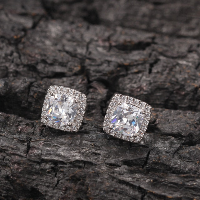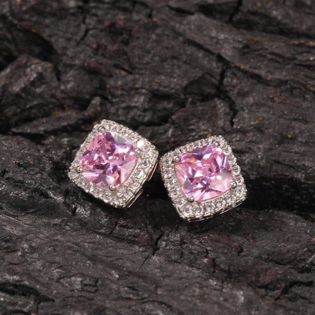 • Load image into Gallery viewer, Square Zirconia Pink Earrings