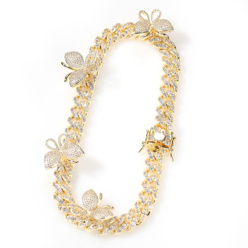 Butterfly 12mm Cuban Chain Necklace CZ Iced Out